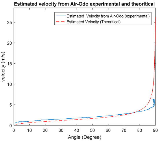 Figure 3, shows the relationship between the Air-Odo angle and drone velocity using random values. The figure clearly shows the ability to estimate the vehicle velocity if the constant shown in Equation (7) is calculated.