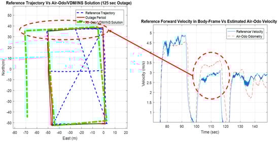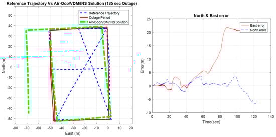 Figure 14 shows the performance of the Air-Odo for the same period of GNSS outage when adding the VDM as a constraint to heading update.