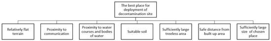 Scheme of the selection process model of a suitable place for decontamination site deployment.