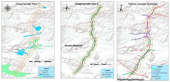 After using project data and constraint obstacles, spatial data layers were prepared as presented in Figure 8.