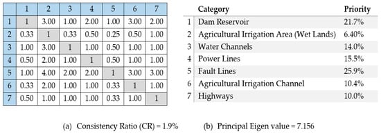 Weights related to each criterion are generated according to the decision maker’s pairwise comparisons. The values given in terms of the importance of weights are important for their priority. Each factor is awarded the necessary evaluation scores. Therefore, the weight of the score will directly affect the performance. In this study, two different AHP were applied and their weights assumed in equal importance. As a result, AHP generates an overall score for each option by combining the weights and scores of the criteria. In the next stage, it determines the ranking according to this score. More general information about AHP can be found in references [,,] within the application of cultural heritage, education, and private investment.