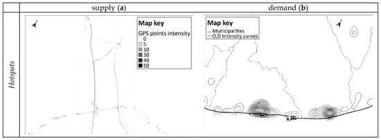 The aim of this step is to analyze intensity of detected positions of P (for supply) and detected positions of P related to origin–destination of trips (for demand) inside the study area.