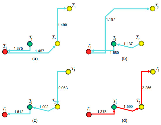 Within one day, tourists visit the selected tourist sights in a single-track and non-repetitive manner. From the initial tourist sight to the last one, any single tourist sight can only be visited once. As to the selected tourist sights, there will be kinds of tour routes for the selected tourist sights, but not all the routes are optimal. Each route has a different motive benefit value for tourists, which should be measured by a quantization method. For any one tour route, a tourist starts from the first tourist sight and travels through several city roads and road nodes and arrives at the next tourist sight. In this process, the ferry distance, road traffic conditions, the convenience of GIS services, tourists’ subjective perceptions, and so on will directly influence the motive benefit satisfaction of the tourist [53,54,55]. The motive benefit satisfaction in the previous tour interval will also influence the motive benefit satisfaction in the next tour interval. Thus, the motive iteration value of the previous tour interval is the initial value for calculating the motive iteration value of the next tour interval. Tourists travel from the first tourist sight to the last one, and in this process, the motive iteration value is monotonically increasing and thus the motive iteration function is a monotonically increasing function. For a particular tour route, each tourist sight is related to one motive iteration function value. For a different tour route, the same tourist sight may be related to different motive iteration function values as the iteration process contains different values. Thus, the ultimate output motive iteration values vary for each tour route. From the aspect of the tour route selection and motive iteration process, each tour route can form a single motive iteration decision tree. There should be a maximum value of the last tourist sight, whose decision tree and related tour route is optimal and yields the highest motive benefit value for the tourist.