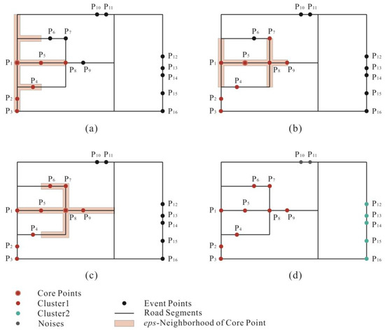 - Deng, M.; Yang, X.; Shi, Y.; Gong, J.; Liu, Y.; Liu, H. A density-based approach for detecting network-constrained clusters in spatial point events. Int. J. Geogr. Inf. Sci. 2018, 33, 466–488. [Google Scholar] [CrossRef]