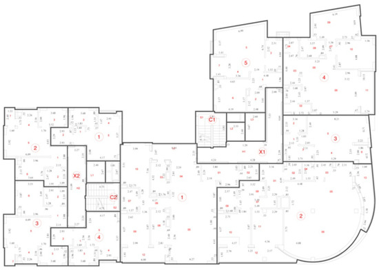 The case study 3D cadastral data were created using existing data sources such as drawings of floor plans (Figure 5) and cross-sections. These drawings were provided by a licensed surveying agency. Other publicly available data sources were also used. A Digital Platform of National Spatial Data Infrastructure (GeoSrbija) [35] was used as a source for land parcels data. A digital real estate cadastre database (web application eKatastar) [36] was used to get other textual data on real estate objects.