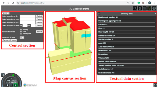 The user interface of the software application for 3D visualization of cadastral data is divided into several sections (Figure 8).