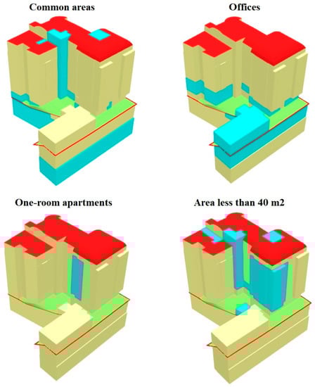 Figure 10 shows an example of visualization using the floor mode. The building units on the selected floor are rendered in different colors.