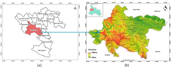 (a) Position of Thuan Chau district and (b) digital elevation model (DEM).