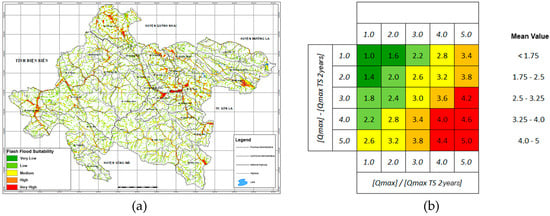 (a) Flash flood risk map and (b) flash flood risk information (FFPI) for each pixel.