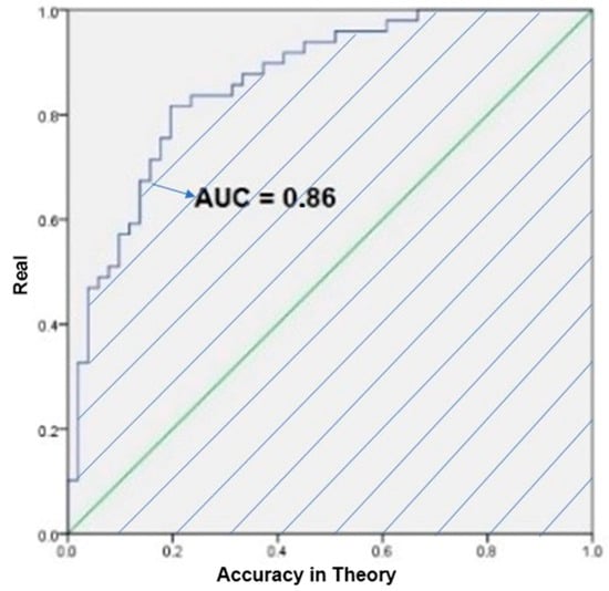 Figure 5 shows the similarities between locations with a high risk of a flash flood (FFPI) on the risk map and locations where local flash floods occurred. The comparative results on the map show that flash-flood locations in the past were in high-risk areas. To test the accuracy of the research results, the receiver operating characteristic (ROC) method was used. In signal detection theory [23,24], the ratio of the received signal (accurate) to the total signal generated is used to evaluate the accuracy of the system. From the received signal, the Statistical Product and Services Solutions (SPSS) software can analyze and draw a signal acquisition characteristic curve (ROC) to determine the reliability of the system. Each point on the curve is the coordinates corresponding to the actual signal frequency on the vertical axis and the theoretical signal frequency on the horizontal axis (Figure 6).