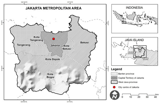 - URDI. Jakarta Metropolitan Region Policy Analysis: Final Report; Urban and Regional Development Institute: Jakarta, Indonesia, 2012. [Google Scholar]