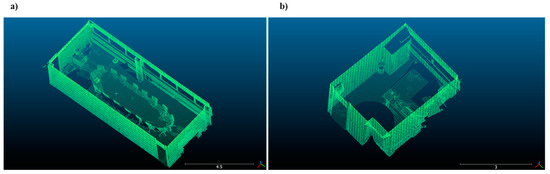 The first step of the methodology aims to parameterize the building envelope including ceilings, floors, and walls, as well as to isolate points belonging to indoor elements such as furniture, columns, plants, and other objects that can behave as obstacles to navigation (
