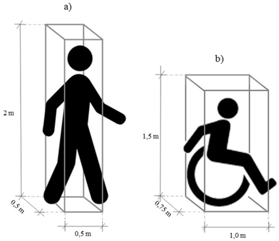 Figure 4). A rectangular prism is selected as the buffer shape. The buffer size varies upon considering the user as a walking person or a person on wheelchair.