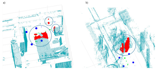 Since both features depend on the point cloud density, the thresholds are also a function of it. In this way, the average point spacing of the entire dataset plus a 10% safety margin, and the number of points in an area equal to 10% of the buffer section are the thresholds for aggregation and size, respectively. In both cases, the parameters are selected with respect to empirical knowledge. They are tested to be appropriate for distinguishing real obstacles from spurious points or other small objects not impeding the navigation.