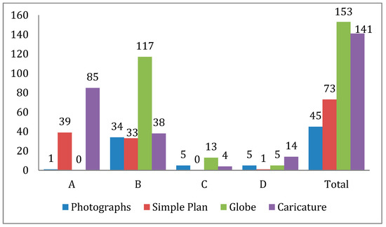Those items could answer “where”, “how”, and “why” questions in accordance with the general map definition [1,2]. From maps, information on distances, directions, and area sizes can be retrieved and relations understood and quantified [13]. On the other hand, it has been seen that some items called ‘pictorial maps’ which have been used in different studies in the literature [6,7,8,17,18] did not show similar features to the map, and they did not provide these criteria. Since there is no content map that transmits spatial information, an analysis is needed under the “map-like” heading [19] (Figure 3).