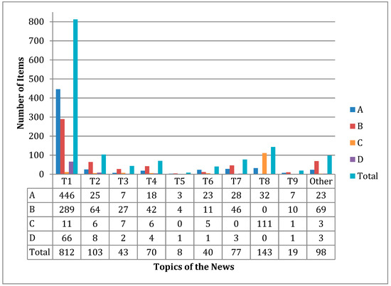Topics of the reports can also be analyzed through the database. Although maps and map-like items on a variety of subjects were seen, the main issues are shown in Figure 9 (see the abbreviation list of section names under Figure 9). As can be seen in the statistics, a dramatically higher number of maps and map-like items were used in relation to political issues. Consistent with this study, comprehensive studies of map use in the news media have shown some consistent patterns in terms of thematic coverage, with conflict, war, and geopolitical issues being highly represented. Monmonier’s (1986) study of The Times of London and four US newspapers for 1940 and 1980 showed that news maps of military and geopolitical themes tended “to be high both proportionately and numerically during periods of conflict and less significant at other times” [3,8]. Therefore, the wars (World War II, Gulf war, Vietnam war, Falkland war), terrorist attacks (in Eastern Turkey and the Middle East), political and diplomatic crises (Cyprus crisis between Turkey and Greece, some examples of Middle Eastern and African countries), changes of borders (breakup of Yugoslavia, dissolution of Soviet Union), which are the most common political issues have been used a large number of maps. The other most popular topics were the economy, natural resources (especially major pipelines, and international relations for energy agreements), tourism, elections (national and international), natural disasters and earthquakes, transportation (critics and announcements about roads, railways, and underground projects), etc.
