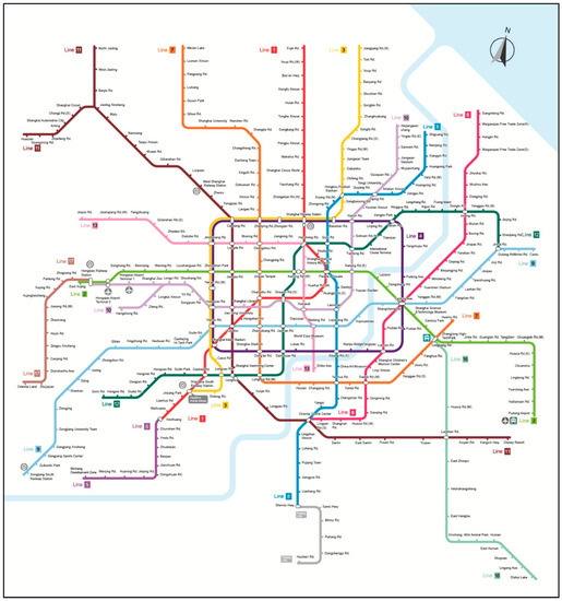 - Shanghai Metro Roadmap. Available online: http://sh.bendibao.com/ditie/linemap.shtml (accessed on 27 May 2019).