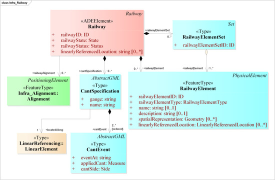 - Devys, E. Rail Infrastructure: RailTopoModel and LandInfra Interoperability. In Proceedings of the 9th RailTopoModel Conference, Paris, France, 22 May 2018; Available online: http://rtm.uic.org/wp-content/uploads/2018/06/10-ISN-18.063-10-Rail-infra-RailTopoModel-LandInfra-Interoperability-220518.pptx (accessed on 28 March 2019).