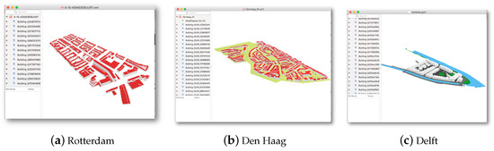 - Safe Software. FME 2019.0. 2019. Available online: https://www.safe.com (accessed on 15 May 2019).