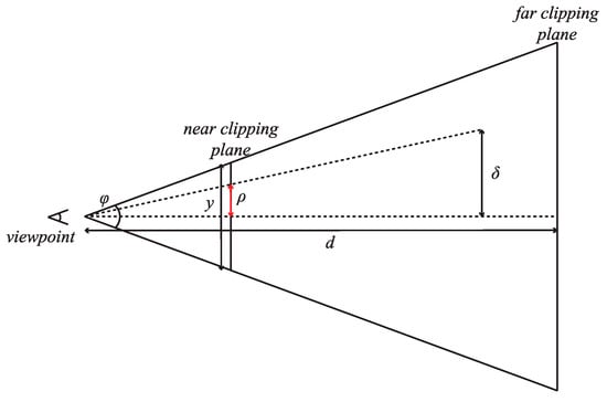 where is the vertical size of the viewport, is the field of view, is the distance from viewpoint to the M-block. As the program running, the viewport is seldom resized, meaning that and will not change, hence we can denote as , which is a constant. So Equation (1) can be written as: