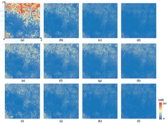 Quantitative evaluation of visual quality: (a–d) Method I. (e–h) Method II. (i–l) Our method.