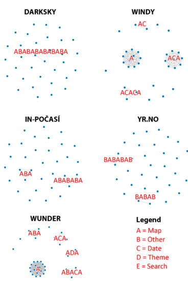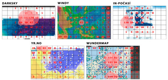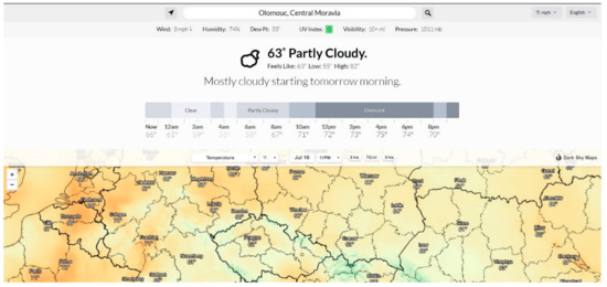 The composition of weather web maps varies greatly. Some authors see an advantage in the most uncomplicated map composition with the most basic controls so that the map is not overcrowded with information or options and that users can work and control it as simply as possible, other authors attach more importance to very interactive maps with a complex composition and large number of controls and visualization options [4,5,16,40].