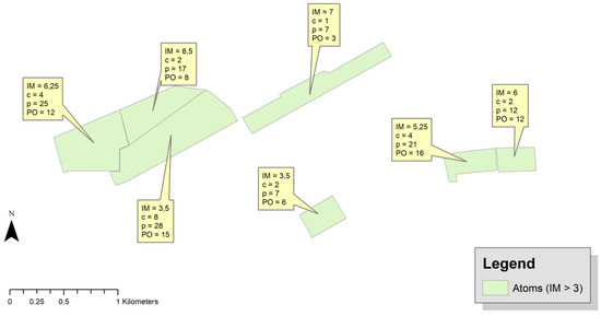 The spatial distribution of the IM index for different atoms in the research area can be seen in Figure 2, while more detailed data can be found in table shown in Figure 3.