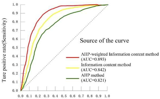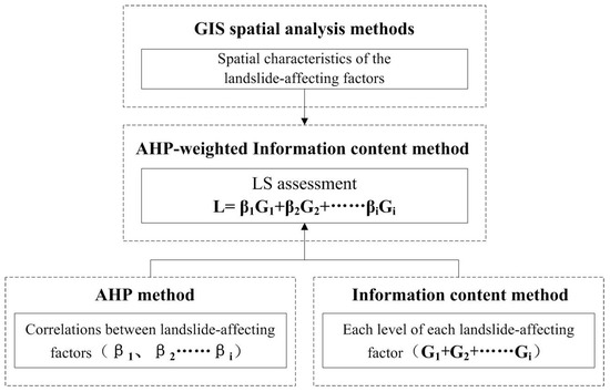 To establish an assessment index system, a weighted information content method is used to determine each classification parameter of the model. The AHP method, which is used to obtain weighting coefficients, is combined with the information content method. The resultant method combines qualitative analysis and quantitative calculations. Based on the AUC values, the accuracy of the AHP-weighted information content method is 8.1% and 5.7% higher than those of the AHP and information content methods, respectively. As a result, the AHP-weighted information content method produces more reliable LS assessment results.