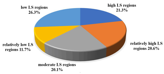 The proportion of the area of regions of each LS level to the total area of southern Anhui.