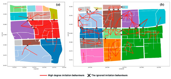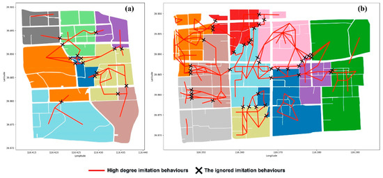 The ignored imitation behaviours among parcel group: (a) grouping result of Parcel 1 and (b) grouping result of Parcel 2.