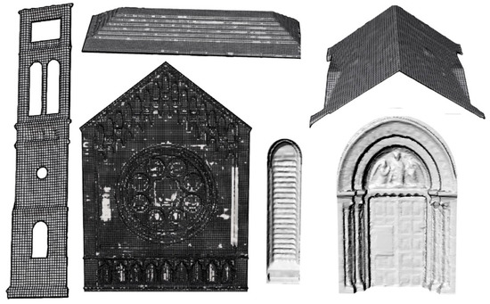 Built heritage geometric modeling has been conducted using reality-based data [1,2,3,4]. The geometric model preserves the current shape of the heritage object, monitors eventual changes, and reconstructs them even if the historic buildings should have some critical evolutions or damages. It is no longer a problem to obtain an accurate 3D geometric model, yet it is still highly anticipated to perform semantic segmentation and labeling of elements [5,6,7], and to improve the representation of the relationships between tangible and intangible heritage information [8].