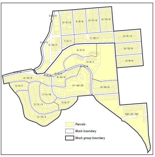 An alternative source of land use and housing data is cadastral data. Cadastral data, often parcel-based, are a comprehensive record of the real estate properties in an area, containing details on property boundaries, ownership, zoning code, and tax records. In the United States, cadastral data are often organized by counties or townships. In recent years, many counties in the U.S. have converted their cadastral data to GIS format and made them publicly accessible through the Internet. According to a survey in 2002–2003 [39] (p. 240), “most communities with populations over 150,000 have some type of GIS for their parcel data and it could be expected that they would have an active conversion effort underway, if not complete.” In 2010, the U.S. Department of Housing and Urban Development launched an effort to develop a national database of standardized parcel-level data, collected directly from local counties, the most authoritative sources [40]. The burgeoning industry of online real estate property search engines is also propelling easy public access of digital cadastral data. All these suggest that a national database of parcel data in the U.S. is on the horizon; it is the time to explore how to use parcel data to improve areal interpolation.