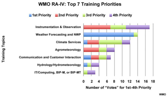 - World Meteorological Organization. Status of Human Resources in National Meteorological and Hydrological Services (ETR-21); World Meteorological Organization: Geneva, Switzerland, 2017. [Google Scholar]