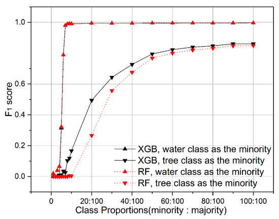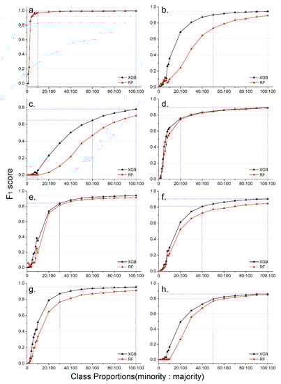 3.1. Experiment 1: Minority Proportion Influence on XGB