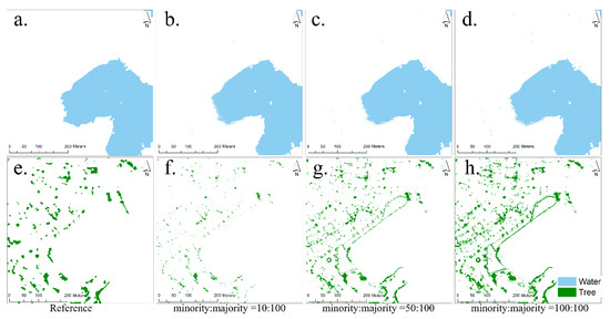 - Reference map and classification maps of area 8 with different imbalanced samples.
