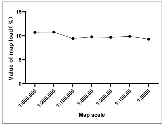 Line chart of map scale and value of map load. The horizontal axis represents map scale, and the vertical axis represents the value of map load.
