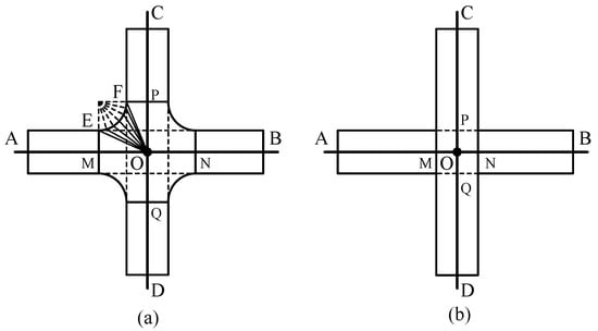 Four-way intersection modeling: (a) Grade intersection; (b) grade separation.