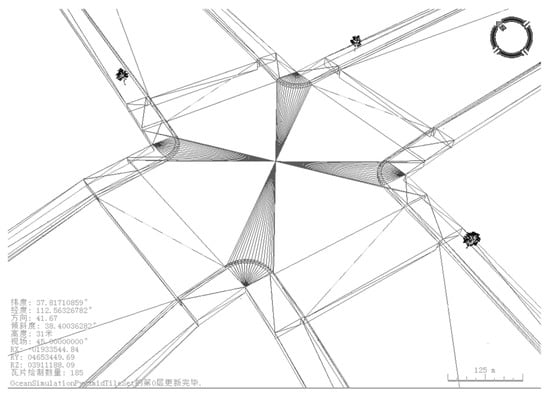 (5) Build the intersection center part using the triangle mesh construction. Construct the intersection mesh based on four corner curves and center points. The four-way intersection mesh is shown in Figure 10.