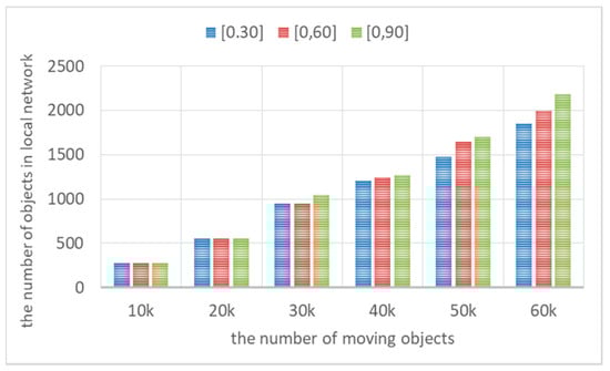 Figure 10. The number of objects in local road networks varies with the number of moving objects in different time intervals. - (2)