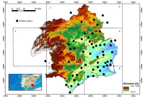 Air temperature data every 30 min is recorded by 53 weather stations belonging to the SIAM and SIAR networks (Sistema de Información Agrometeorológico de la Región de Murcia, Agro-meteorological information System in Murcia Region) and Sistema de Información Agroclimática para el Regadio, Agro-meteorological Information System for Irrigation) (Figure 3). In this work, only data for 2012 were analysed to test which model produces the most accurate results.