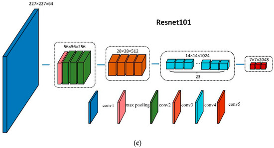 Convolutional Neural Network (CNN) network structure: (a) AlexNet; (b) VGG16; (c) ResNet101.