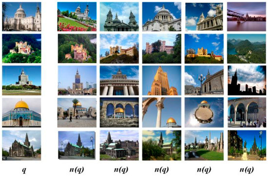 Examples of query images (q) and the real ranking sequence of negative examples (n(q)) for the query image.