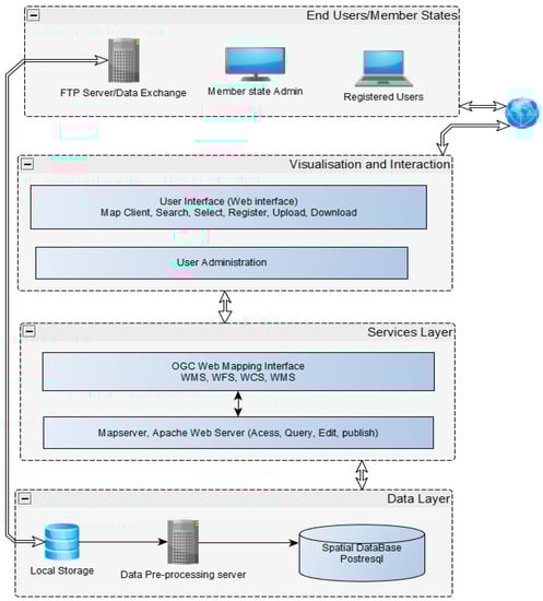 - Maguire, D.J.; Longley, P.A. The emergence of geoportals and their role in spatial data infrastructures. Comput. Environ. Urban Syst. 2005, 29, 3–14. [Google Scholar] [CrossRef]