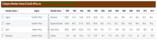 To achieve its strategic goals, the African Union (AU) seeks to strengthen its capacity to collect, analyse, and evaluate data to support the implementation of its developmental agenda [,,]. Acute shortage of data to support the monitoring, evaluation, and comparison of developmental programmes has been stressed as one of the problems facing Africa. AU affirms that the implementation of the Agenda 2063 strategic plan is knowledge-driven and requires both qualitative and quantitative data to support monitoring and evaluation. In the same vein, AU recognises the need for monitoring and evaluation systems at country, regional, economic, community, and continental level to track the implementation of the set targets. The plan also emphasizes the need for the establishment of a common platform to facilitate the preparation of integrated monitoring and evaluation reports. Furthermore, the need to generate reliable, timely, and disaggregated data using appropriate systems for accurate reporting has been highlighted as critical to supporting evidence-based planning.