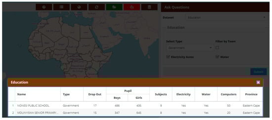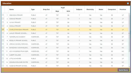 The ability to query a geoportal is critical for many users. Here, we demonstrate this functionality by querying the education test dataset as shown in Figure 12 below.
