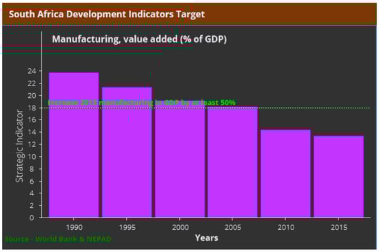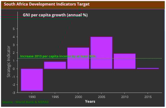 Africa’s developmental trajectory, especially its social prosperity, economic development, public security and political stability, protection, and regional integration are largely hinged on the full implementation of the Agenda 2063 strategic blueprint [,,]. Endorsed in January 2015 by the African Heads of State and Government at the 24th Ordinary Session of the Assembly of the African Union, Agenda 2063 is Africa’s strategic development program that spells out the continent’s economic and social aspirations over the long term []. Rooted in Pan-African principles of African solidarity, Agenda 2063 is an endogenous transformation plan that seeks to strategically and competitively reposition the African continent to ensure poverty eradication and equitable people-centric socio-economic and technological transformation. The continent’s strategic objectives are broadly encapsulated into seven strategic aspirations that basically articulate the desired state of the African continent. In a nutshell, the aspirations endeavour to spell out Africa’s vision regarding inclusive growth and sustainable development, continental integration and Pan-Africanism, good governance and democracy, peace and security, cultural identity and heritage, people-driven development, and the need to be a competitive and strong global player and partner [,,]. Some of the strategic impact areas identified in the Agenda 2063 implementation plan include wealth creation, shared prosperity, sustainable environment, and transformative capacities []. Some of the indicators for wealth creation are access to electricity (% of the population), access to clean water, annual gross domestic product (GDP) growth rate, and industrial development index in Africa. The indicators for sustainable environment include the annual change in forest area (%), the sustainable nitrogen management index, terrestrial sites of biodiversity importance that are completely protected, and freshwater withdrawal as a % of total renewable water resources [,].