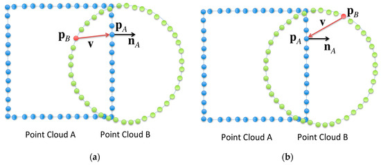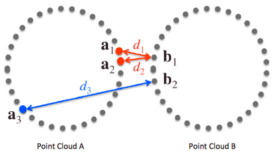 - For a point ai in point cloud A, perform the nearest neighbor search and find its nearest neighboring point bj(ai) in point cloud B (see Figure 3).