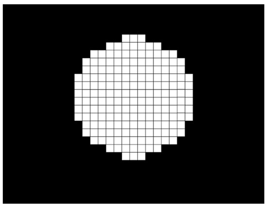 Then we focus on an arbitrary pixel from among these N pixels. For the pixel of interest, let us consider the number of projected 3D points, x. Note that x is an integer-valued random variable in the range . Because of the assumed uniformity, the probability that a 3D point on the surface segment is projected onto this pixel is . Then, x should obey the following probability function in the form of the binomial distribution: . Therefore, the probability that at least one 3D point is projected onto the pixel of interest is