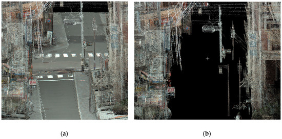 We should refer to the fact that the ground removal method described in Section 4.2 would be unsuitable in a city with varying terrain. In our experiment, where the ground in the city is almost flat, we used parallel movement to simulate the movement of the float, which may deviate from the movement in the real scene. The measurement error of MMS for small point density objects may affect the accuracy of the final result. We should also consider that large-scale point cloud data often include many missing portions because occlusions are inevitable, especially in some complex environments of laser scanning. In the future, we expect to preprocess the data using inpainting [29,30]. Rather than just increasing the number of points in the sparse part of the laser-scanned point cloud, we prefer to achieve a more uniform and dense distribution of the point cloud. For the parts of the laser scanning that are missing due to the mutual occlusion, we plan to use some technologies, such as deep learning, to fill the vacant point cloud as much as possible.