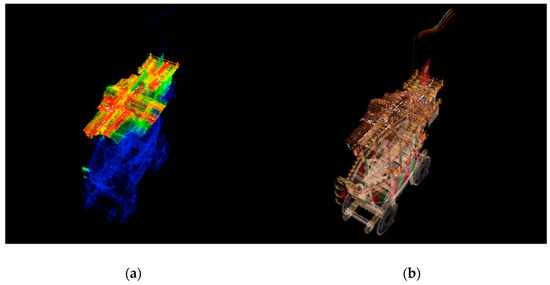 Figure 16 shows the laser-scanned point cloud of plant. By using these laser-scanned point cloud data, we can directly see the internal structure of the plant on the computer. This can help engineers plan their internal layouts. For example, in the case of moving large equipment, we can directly use these data to conduct computer simulations to determine whether the work can be completed smoothly. By analyzing the results of the comparison, we can verify whether the movement path is feasible.